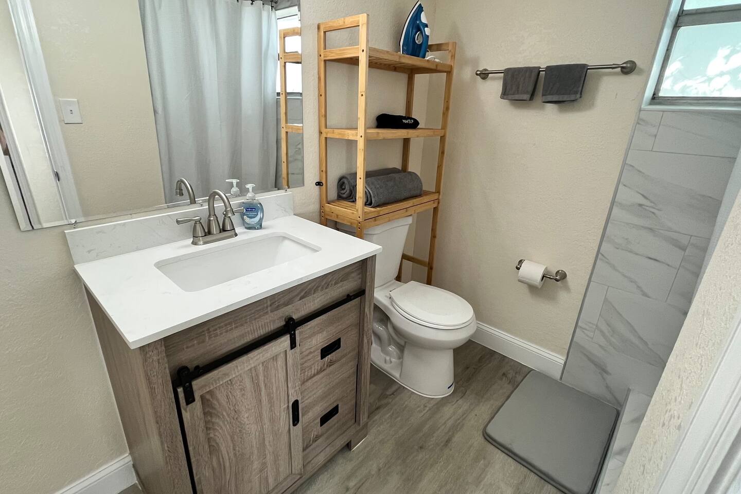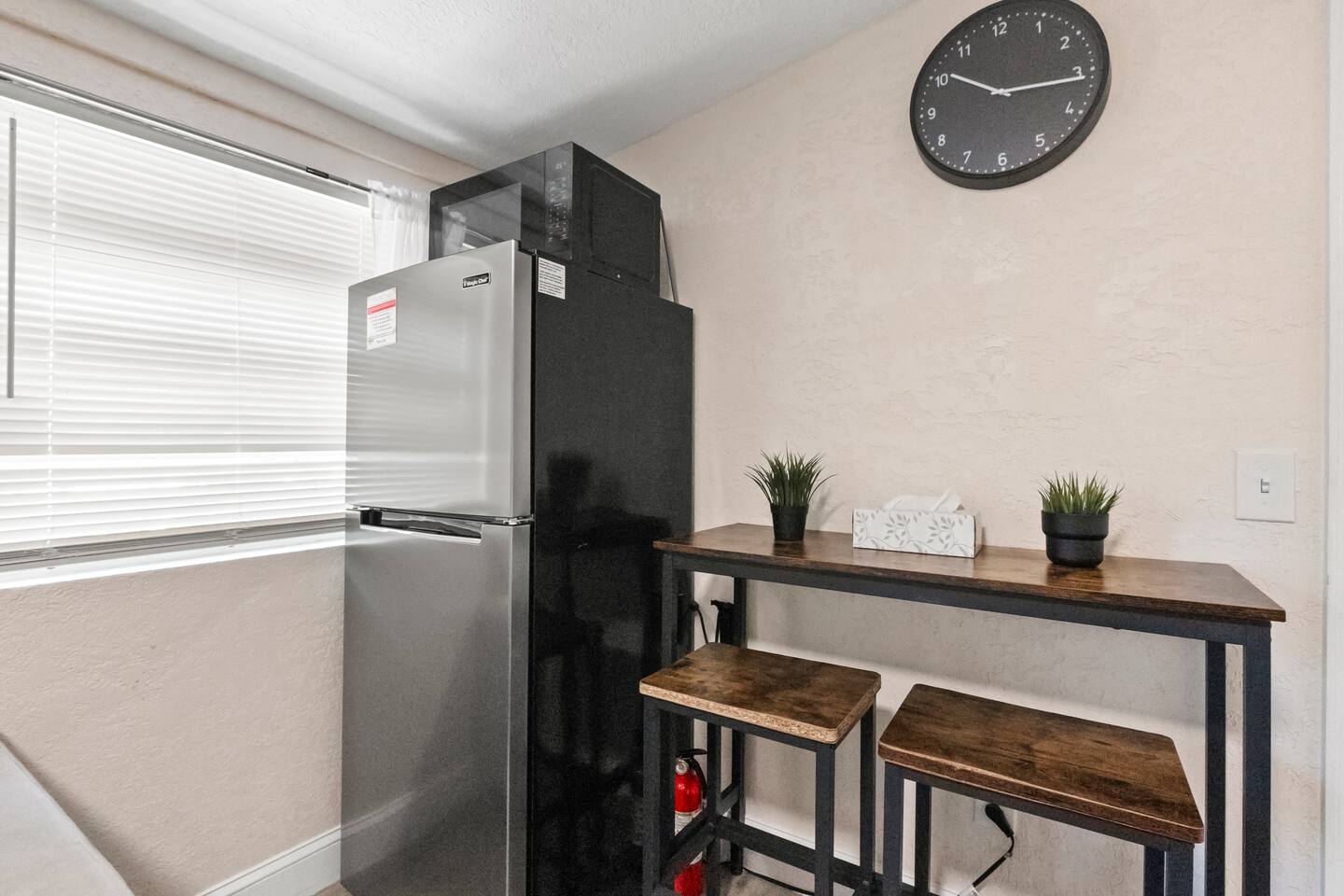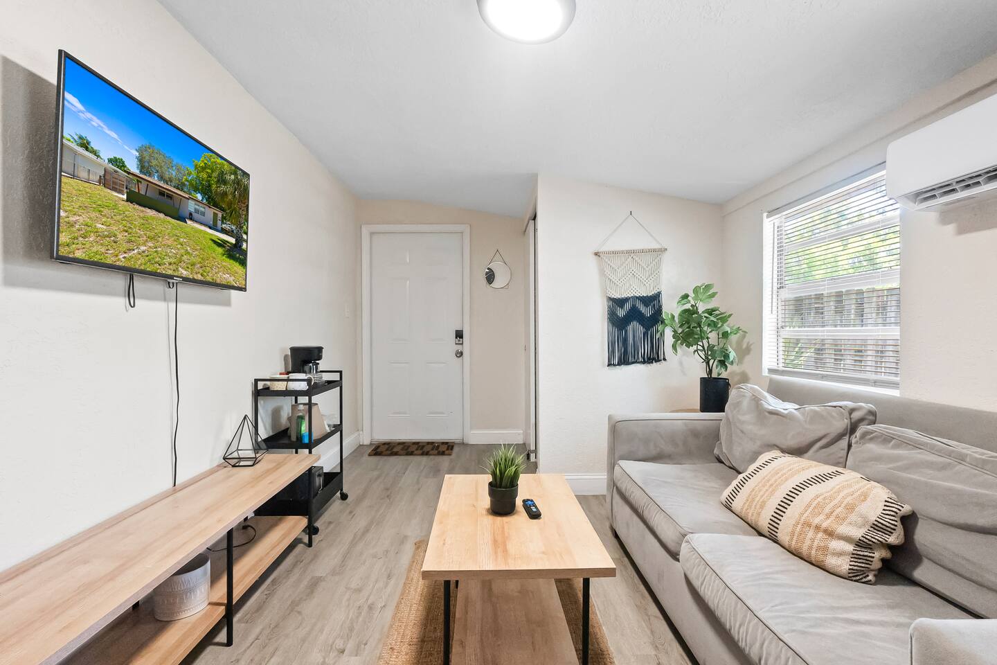 Welcome to your private suite! We've equipped it with everything you need for a comfortable stay: Living & Sleeping: - Comfortable Queen-sized bed with fresh linens - Twin-sized air mattress available upon request - Dedicated dining table Entertainment & Work: - Two 43" Roku Smart TVs, so you can stream your favorite services (Note: No cable TV) - Fast and free Wi-Fi, perfect for remote work or streaming Comfort & Bathroom: - Two powerful, individually controlled air conditioning units - Full bathroom with a spacious walk-in tile shower - Hair dryer, iron, and ironing board provided Kitchenette Corner: - Mini-refrigerator - Microwave - Coffee maker with complimentary coffee to start your day
