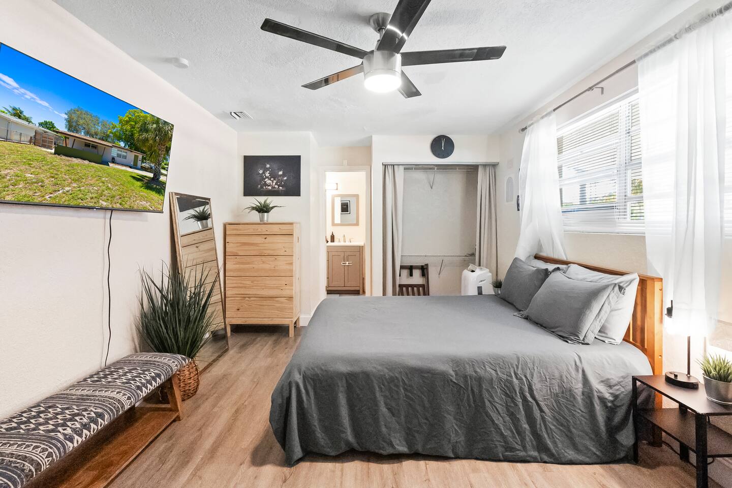 Welcome to your new, chic studio in a quiet Fort Lauderdale neighborhood! Perfect for solo travelers or couples, this space is designed for comfort and convenience. You're just a short drive from the beach and downtown, with easy access to shops and restaurants. After a day of exploring, relax with your favorite shows on the Roku Smart TV. With fast Wi-Fi and a seamless self check-in process, your relaxing getaway starts here.