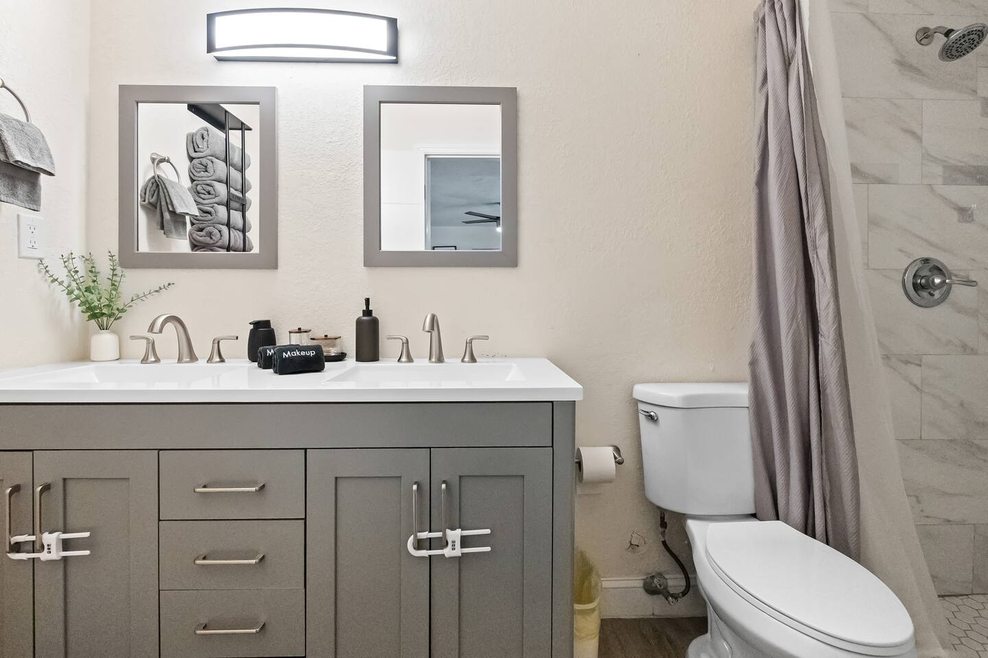 Guests have private access to the entire suite, including their own separate entrance. Parking: Two dedicated parking spaces are available for your use on the premises.